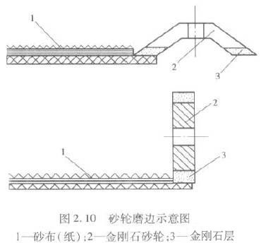 磨边过程中去除磨料这道工序,一般都采用金刚石砂轮,如图2.10,磨去粘结剂和部分基材这道工序则采用砂带进行,如图2.11所示。